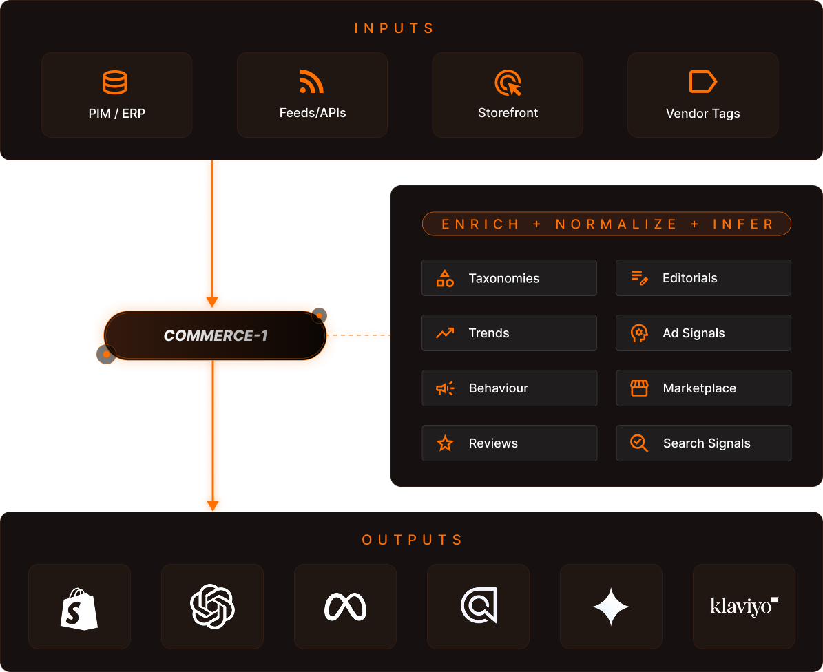 Built exclusively for retail, Commerce-1 delivers over 99.8% accuracy where generic models hallucinate. Trusted across 100M+ products, it automatically extracts deeply structured, always on-brand data at enterprise scale.