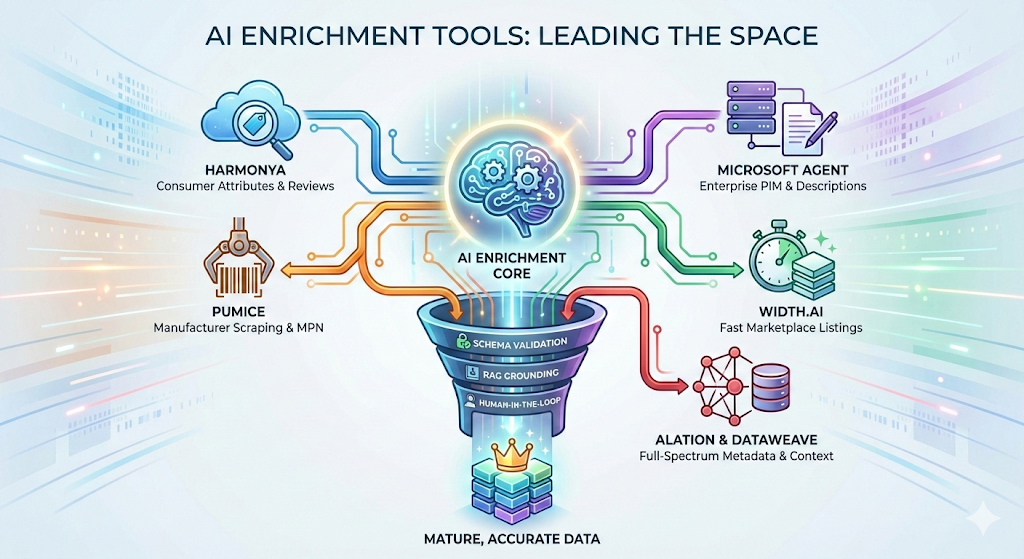 AI product data enrichment transforms raw catalogs into machine-readable assets using vision AI, natural language processing, and retrieval-augmented generation architectures.