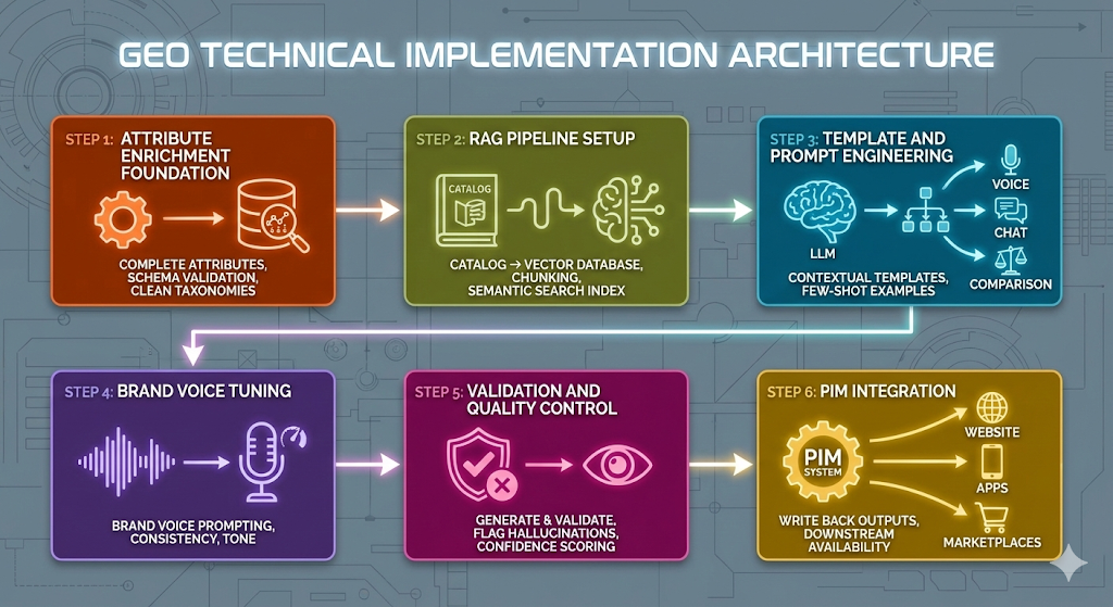 GEO represents a new category in commerce infrastructure—sitting between traditional enrichment and customer-facing content generation.
