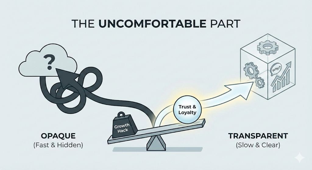 Opaque systems optimize for short-term engagement at the cost of trust, compliance, and long-term revenue.